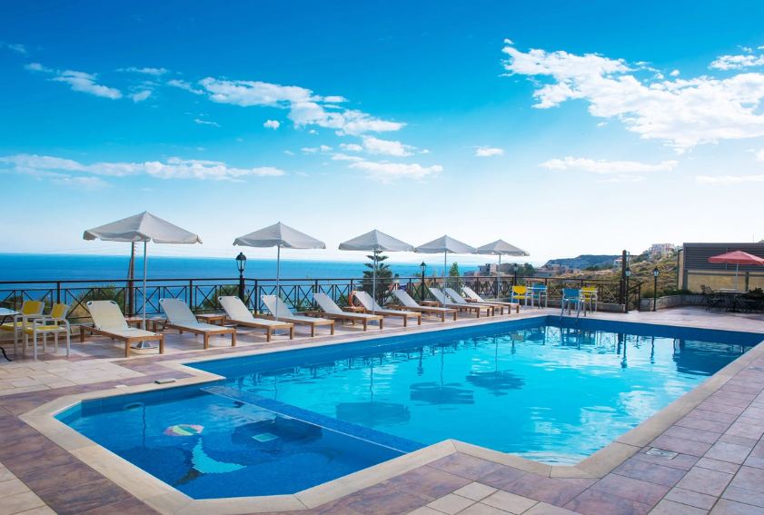 - Το συγκρότημα διαθέτει επίσης πισίνα με pool bar και μια βεράντα με όμορφη θέα.